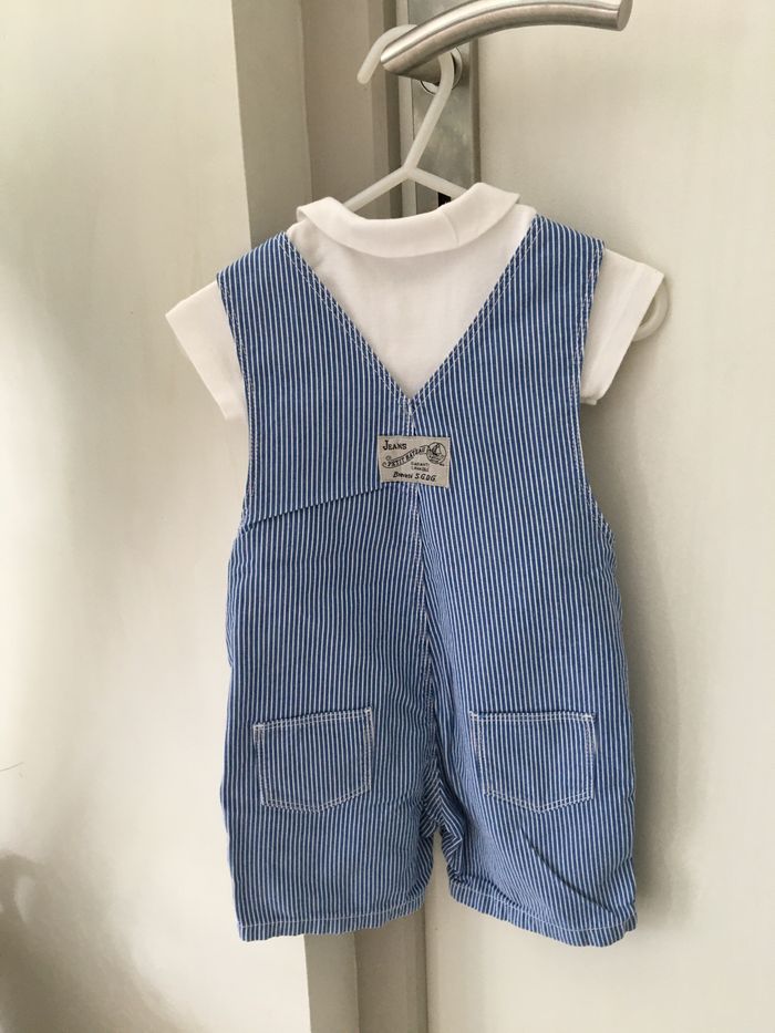 Salopette Petit Bateau rayée bleu et blanc Taille 18 mois Excellent état Vendue avec un body à col
