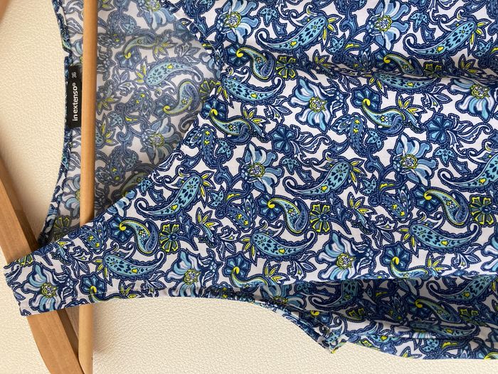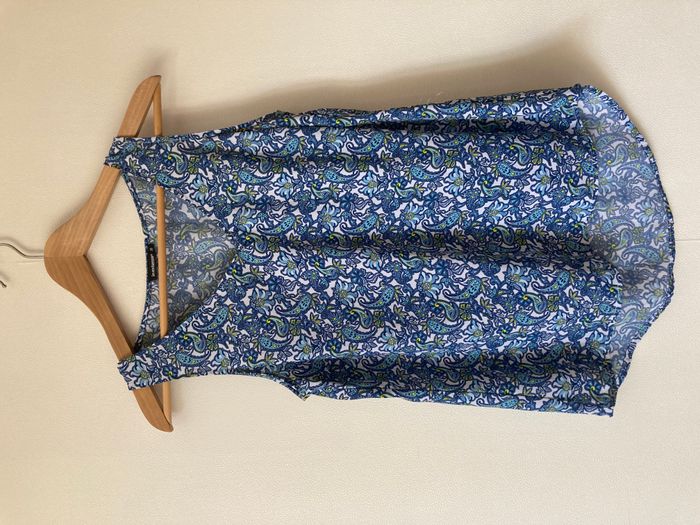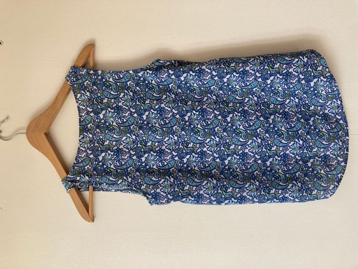 taille 36 étiquette coupée pas de défaut largeur au niveau des aisselles : 42 cm hauteur 67 cm, un peu plus court sur le devant