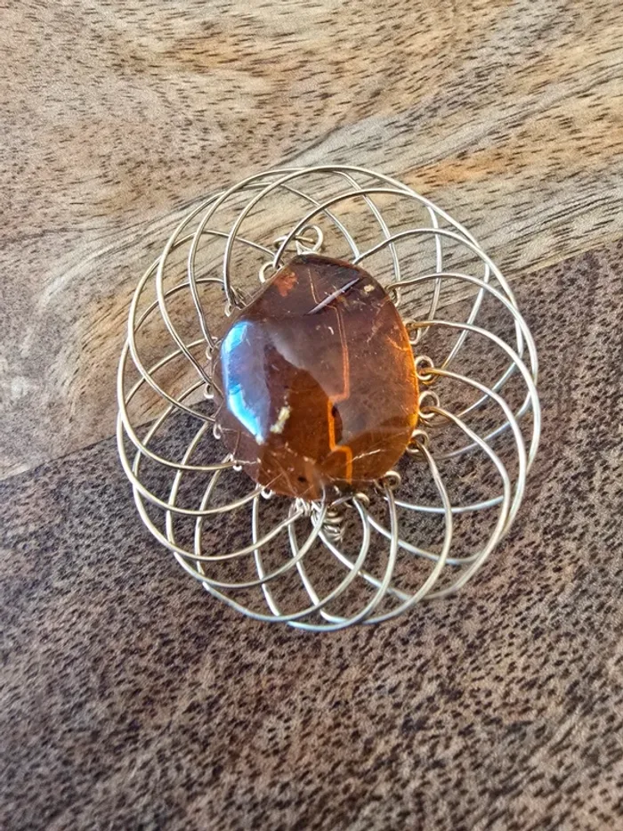 Broche vintage Citrine acier doré - photo numéro 2