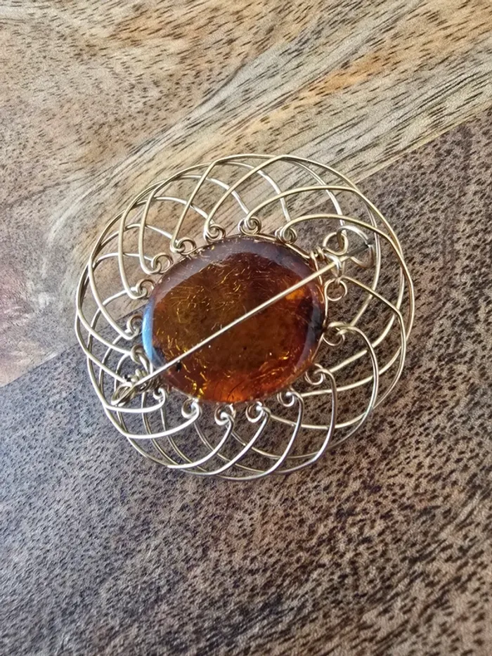 Broche vintage Citrine acier doré - photo numéro 3
