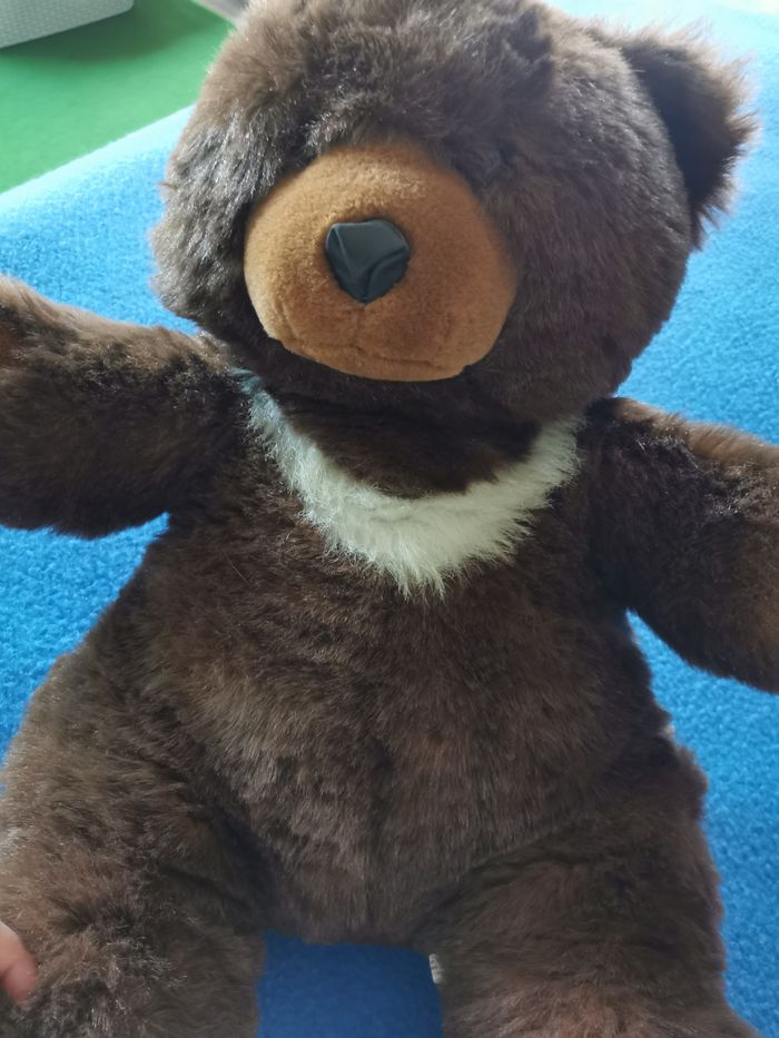 Peluche gros ours marron collier blanc vintage - photo numéro 2