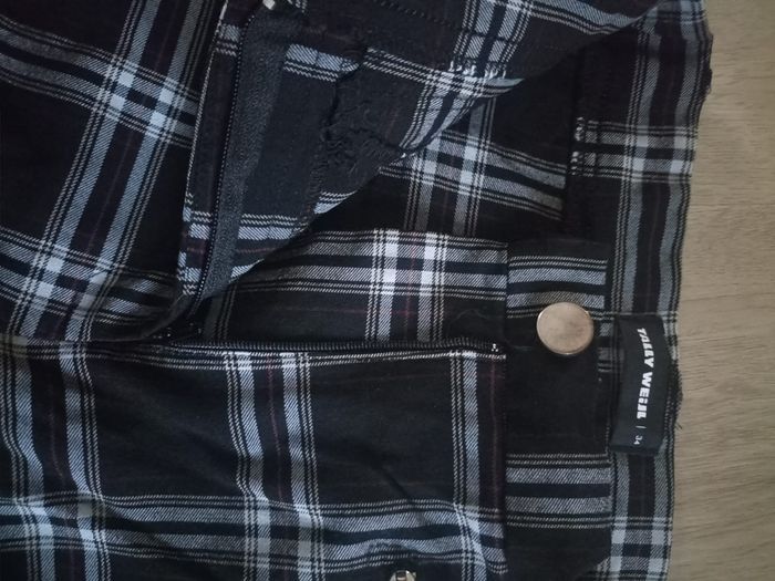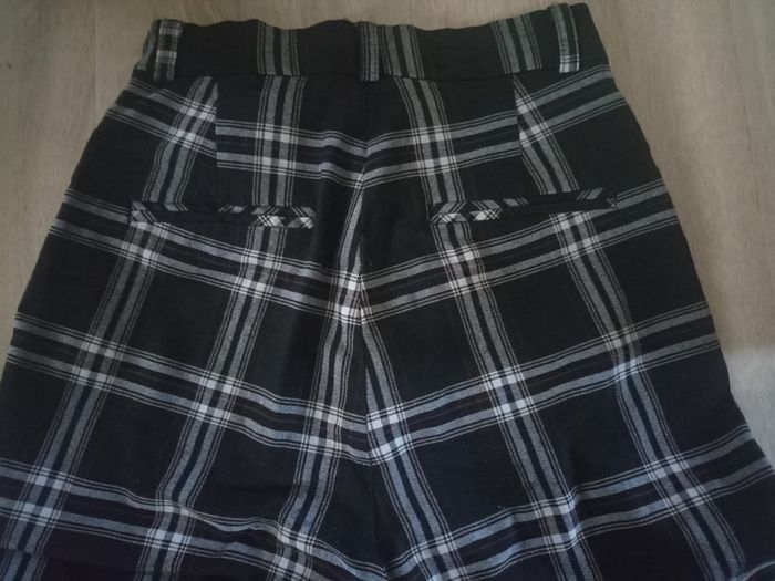 Pantalon taille 34 noir à carreaux 2 fausses poches devant avec fermeture éclair 2 fausses poches derrière Très bon état