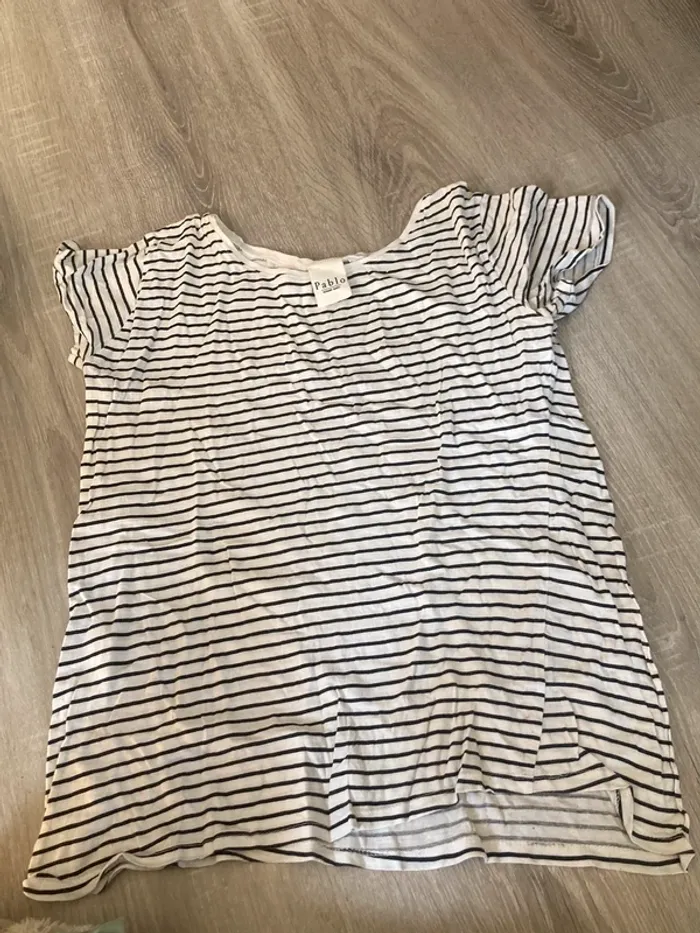 T-shirt femme à rayures. Taille M. Beaucoup d’autres vêtements et accessoires dans mon dressing. N’hésitez pas pour toute question.