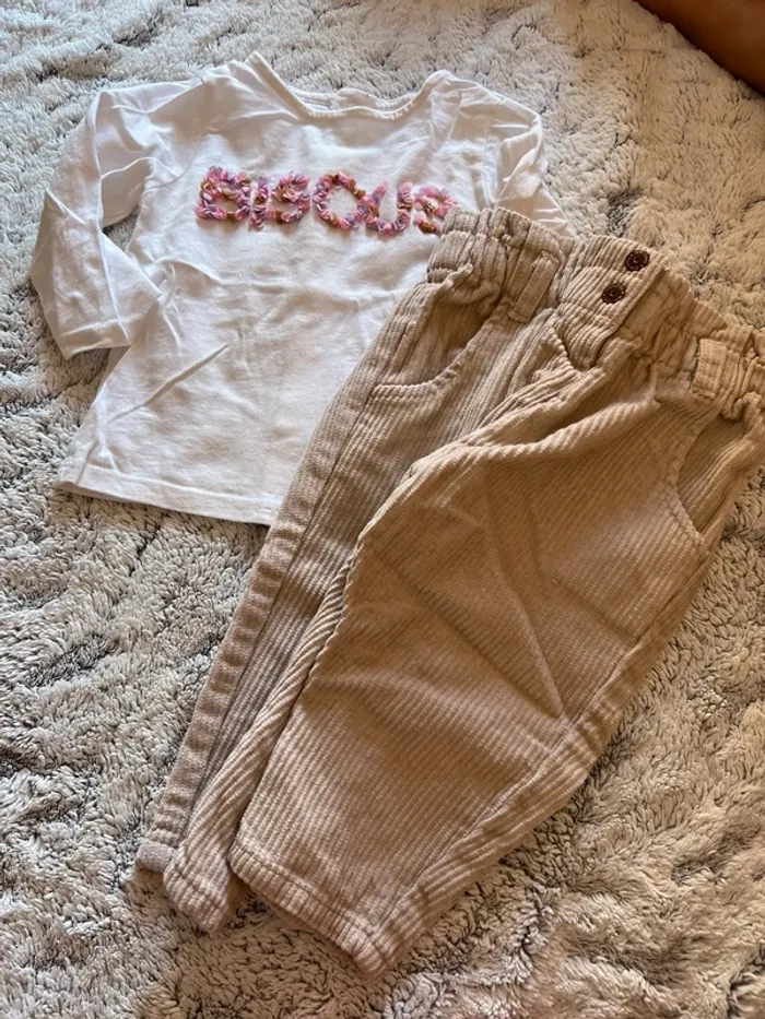 🟣Pantalon Kiabi 6 mois mais taille grand 🟣 Manches longues Bisous 9 mois #magali664bebefille9mois
