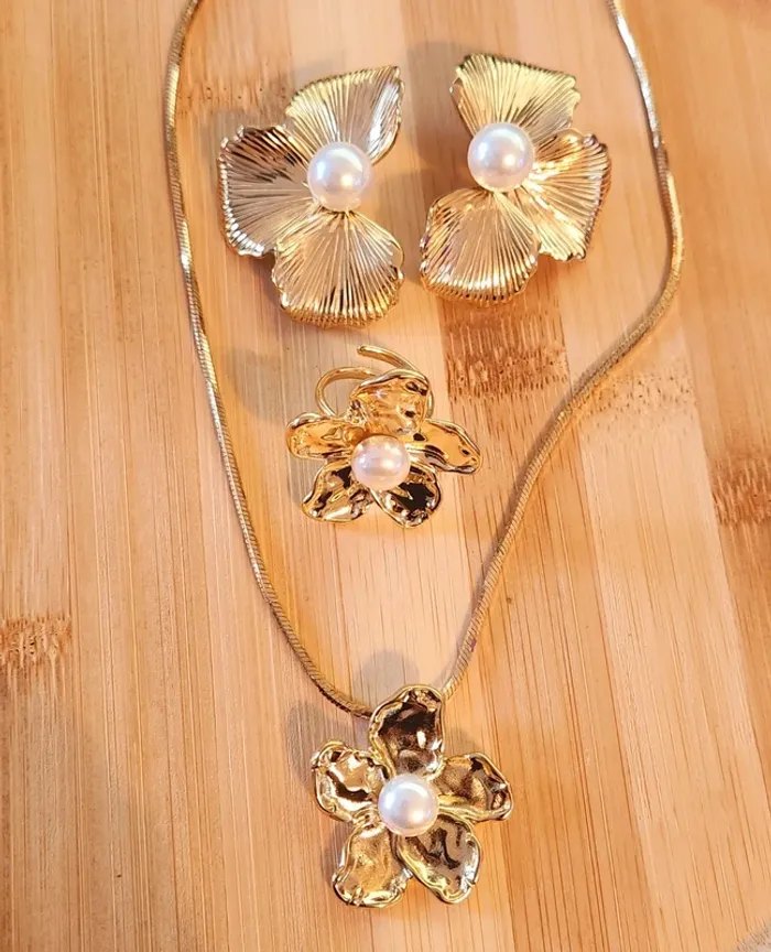 Parure en acier inoxydable neuve 1 paires de boucles d'oreilles 1 collier 1 bague réglable Envoi rapide et soigné