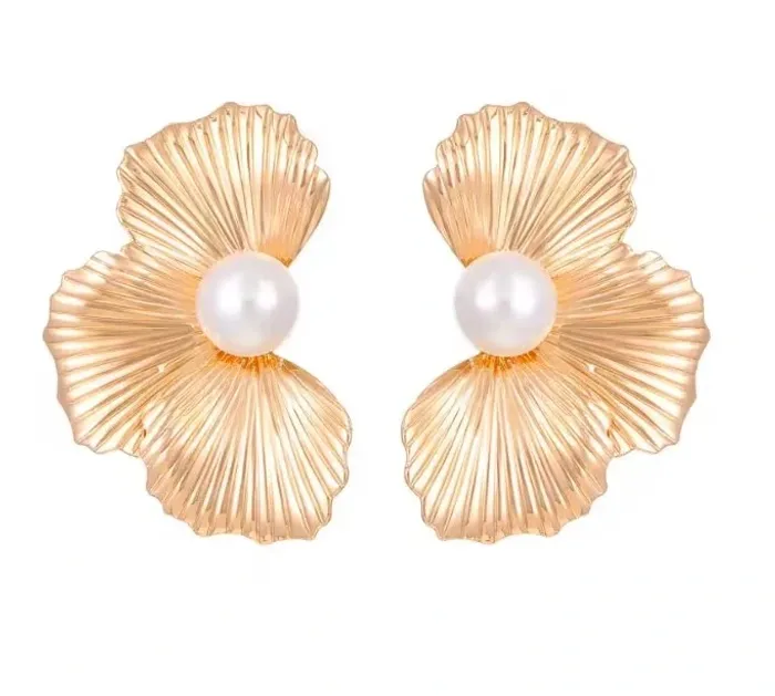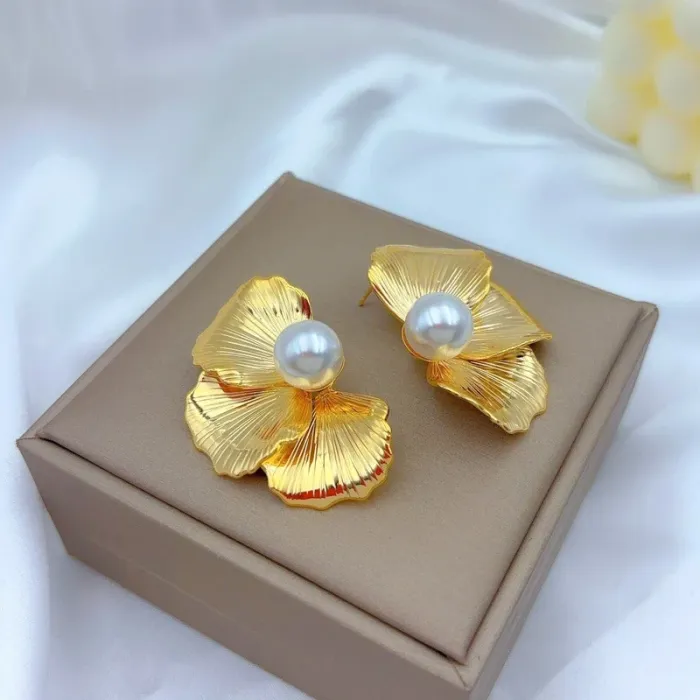 Boucles d’oreilles femme  Fleurs dorées & perles élégantes