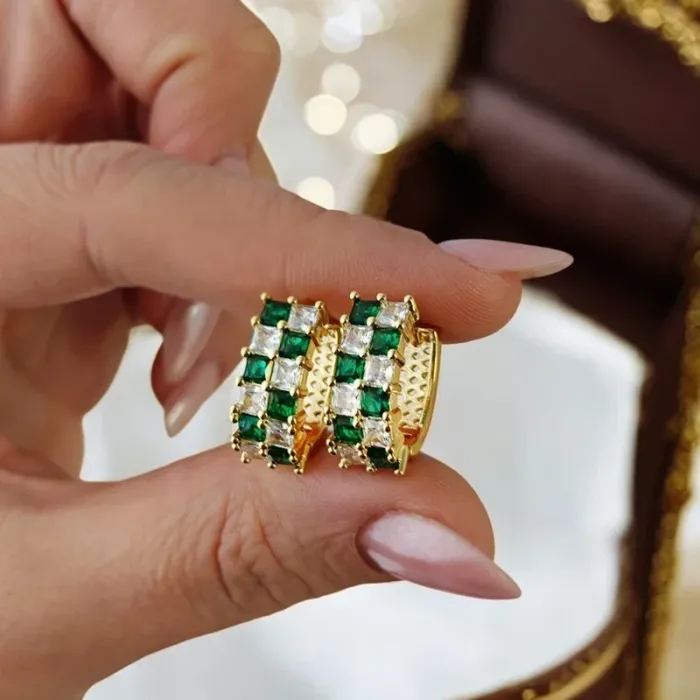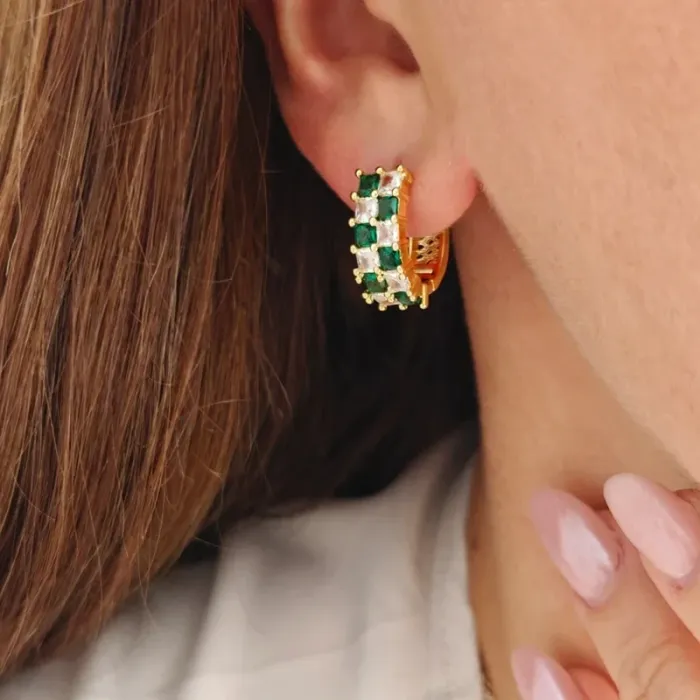 Apportez une touche de luxe discret et d’élégance raffinée à votre style avec ces boucles d'oreilles créoles plaquées or. Ornées de pierres vertes et blanches, elles offrent un éclat sophistiqué, parfait pour un look chic au quotidien ou pour sublimer une tenue de soirée. 💎 Caractéristiques : Matériau : Acier inoxydable avec plaquage or clair Design : Créoles avec alternance de pierres vertes et blanches Couleur : Or clair Dimensions : 2 cm x 0,6 cm x 1,9 cm 🛍️Neuves jamais portées prêtes à illuminer vos oreilles ! Envoi rapide et soigné