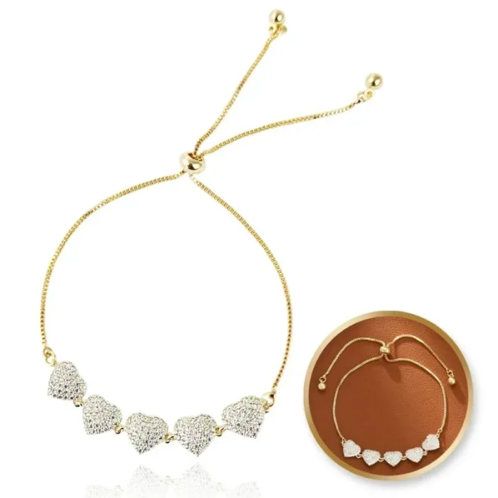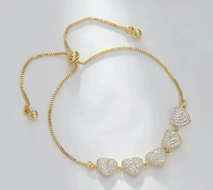 Bracelet Cœurs Dorés – Zircons Étincelants