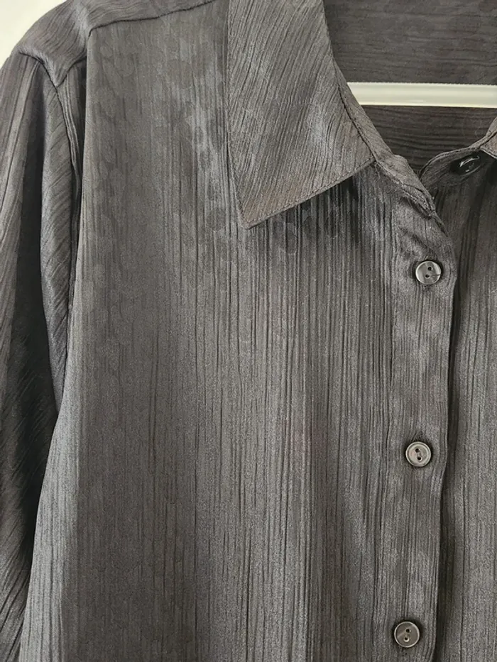 Chemise satinée noire effet plissé – Taille 46 motifs peau de panthère - photo numéro 3