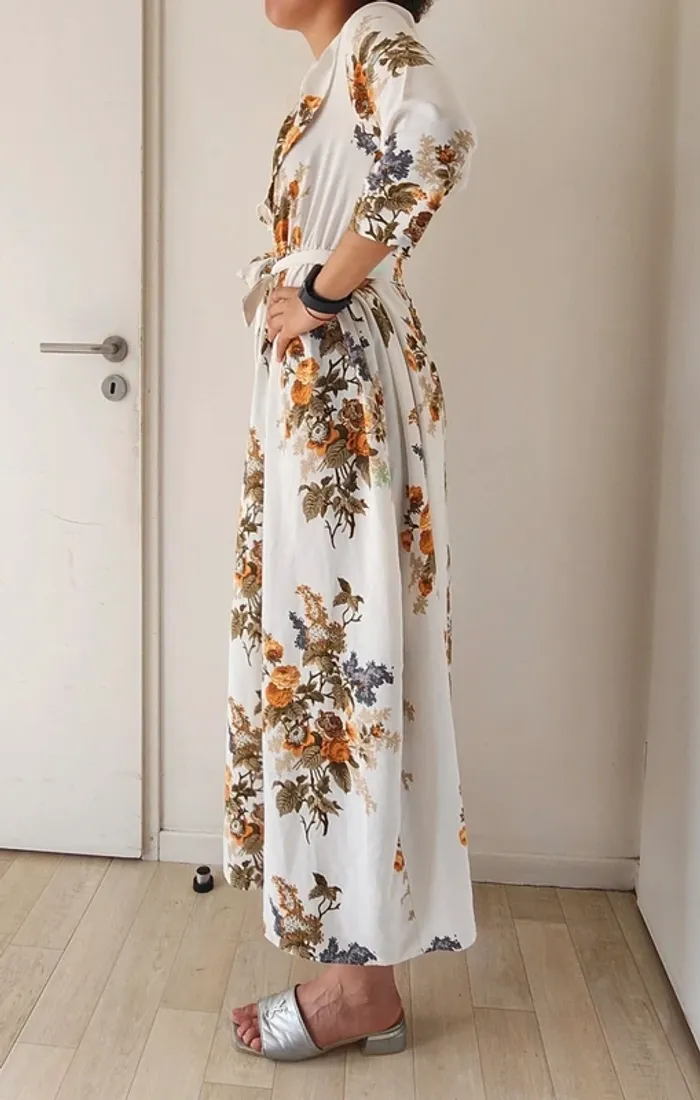 Robe longue chic et féminine de la marque J&A Mode, taille L, convient aussi à un 38/40 selon la coupe (ceinture ajustable). Motif floral orange, vert sur fond blanc, tissu fluide très agréable à porter. Col volanté, manches 3/4, fermeture croisée avec ceinture à nouer à la taille. Parfaite pour l’été, les occasions, ou un look élégant au quotidien. Très bon état, portée une seule fois. Motif fleuri tendance Coupe flatteuse et confortable #robe #robelongue #fleurie #lookbohème #lookété #modefemme #robeélégante #tailleL #vintedfemme #jasansfleuri #J&AMode #robeimprimée #chicfemme