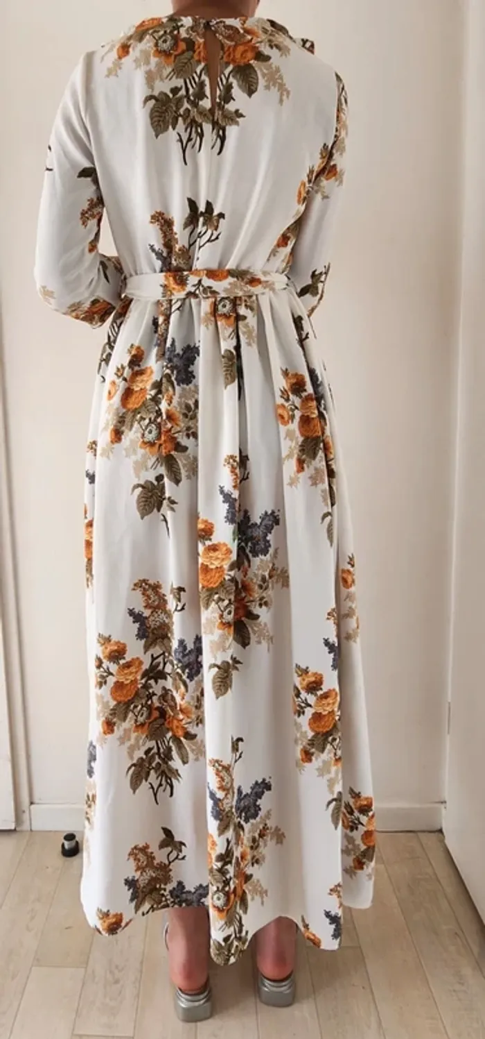 Robe longue fleurie blanche à col volanté – Taille L – Élégante & fluide - photo numéro 2