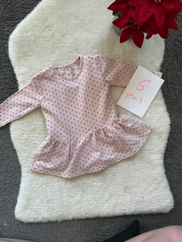 Robe avec attache body en bas Taille 6 mois Marque primark En très bon état #charlinelolfille6mois N’hésitez pas si vous avez des questions