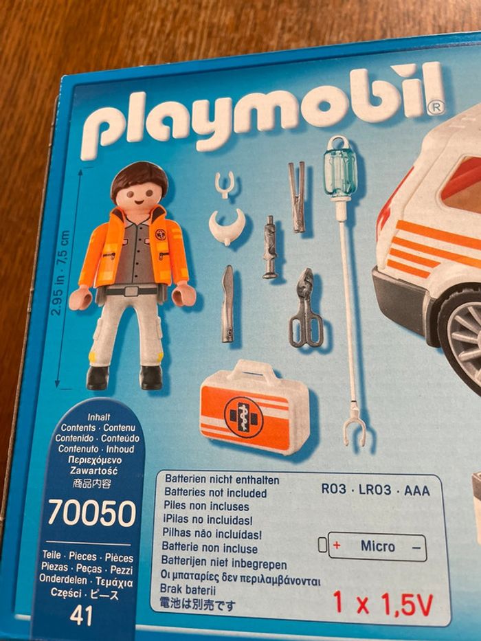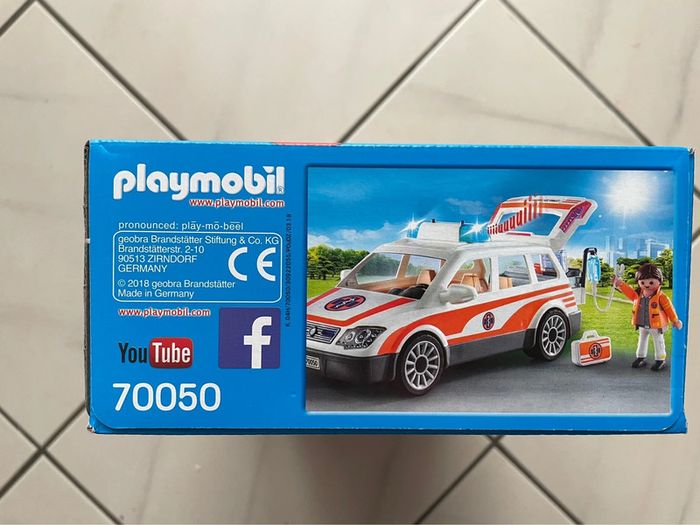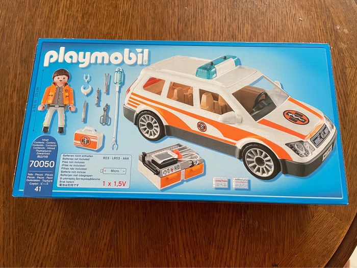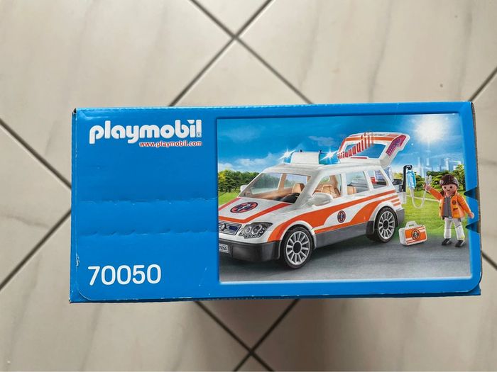 Boîte playmobil City Life 70050 Neuve Boîte jamais ouverte avec encore les scellés À partir de 4 ans Voiture et ambulancier et équipement pour médecin urgentiste Avec girophare effets lumineux et sonores ( piles non fournies) La banquette arrière est rabattable ) D’autres playmobil dans ma boutique