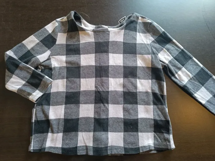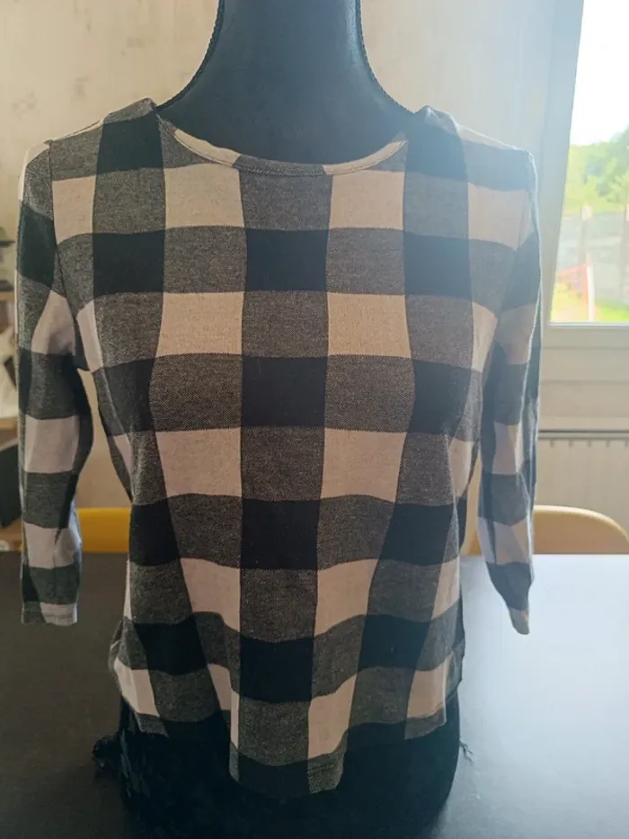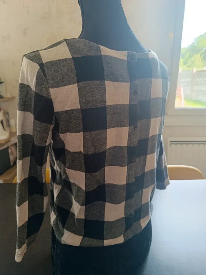 Blouse PIMKIE À carreaux noirs, gris & blancs Fermée par boutons dans le dos Manches 3/4 76% Coton & 24% Polyester TAILLE S TRES BON ETAT Allez voir mes autres ventes!