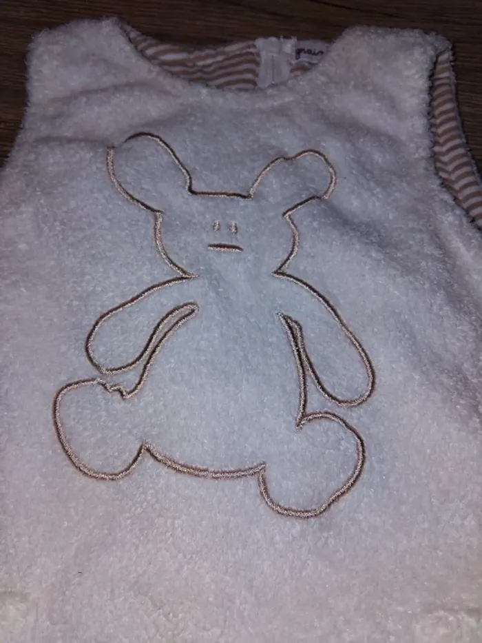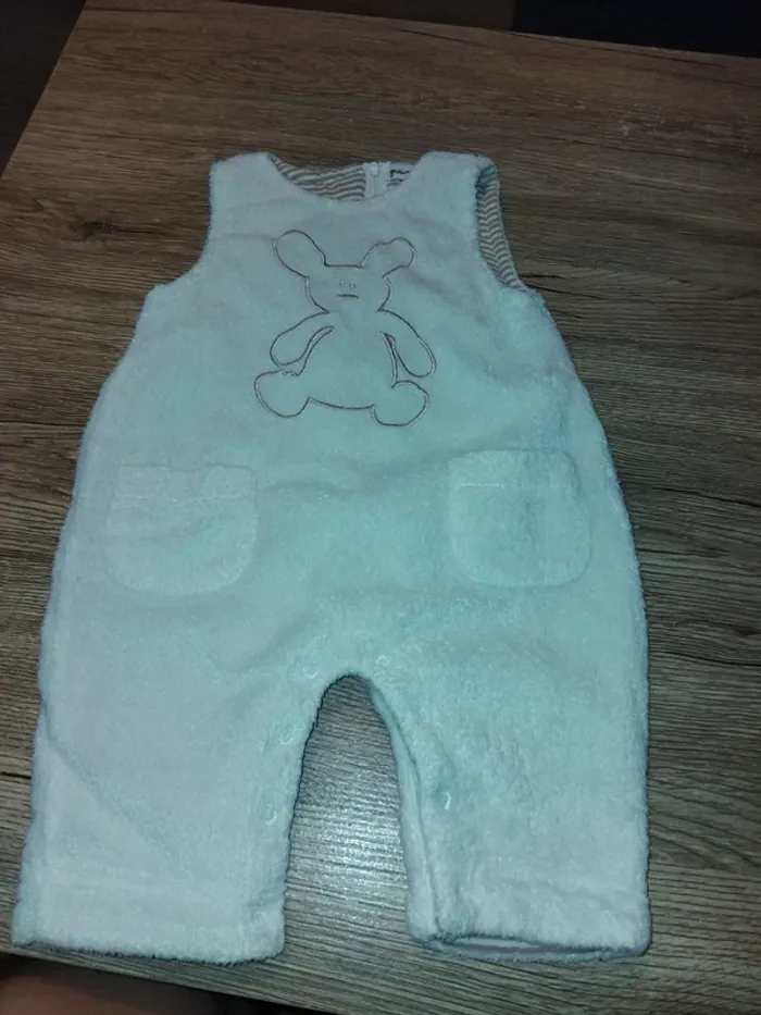 Bonjour, je vends cette salopette blanche avec motifs de la marque Grain de blé taille 1mois en très bon état.