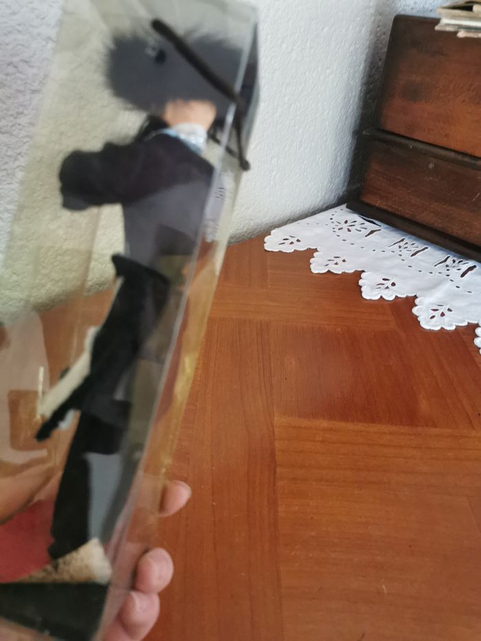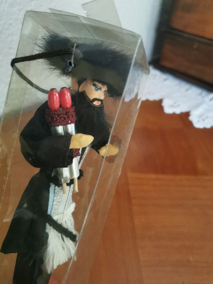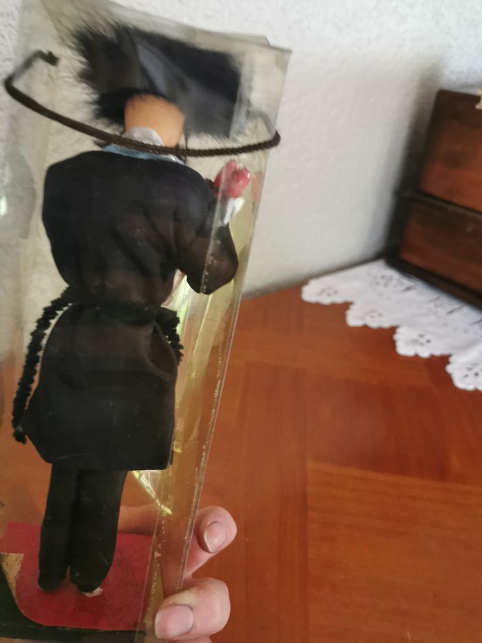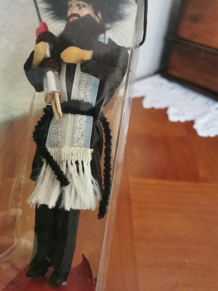 Poupée folklorique ancienne 1960/1970 Israël homme. Figurine vintage faite à la main représentant un homme juif avec Torah, poupée judaïque, Israël, hébreu, dans une boîte. Poupée avec les mains molles tissu ou mousse, visage peint, fait en papier mâché? En très bon état général. Taille 20 cm, poids 87g.