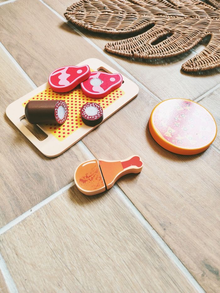 🎀Différents aliments avec scratch en bois : plateau, pizza,steak, poulet...