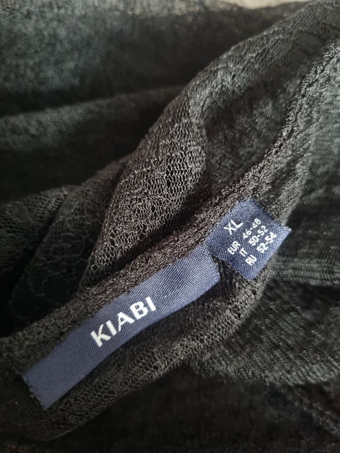 Débardeur noir en dentelles transparente,taille XL marque Kiabi, longueur 62cm, largeur 46cm, longueur épaule à aisselle 26cm, largeur aisselle à aisselle 45cm.