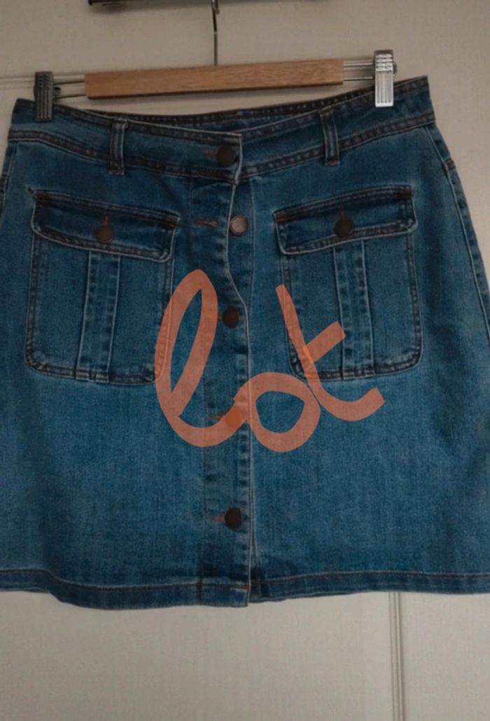 Lot de 2 jupes en jean bleu et une blanche. Comme neuve ! 9€ les deux