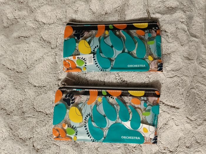 2 trousses plastiques colorées fermeture éclair neuves état excellent - photo numéro 1