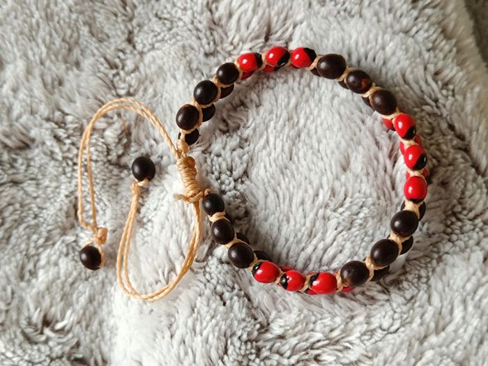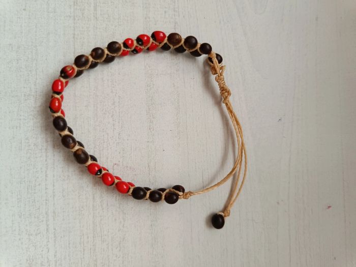 Bracelet perles bois ajustable rouge noir - photo numéro 1