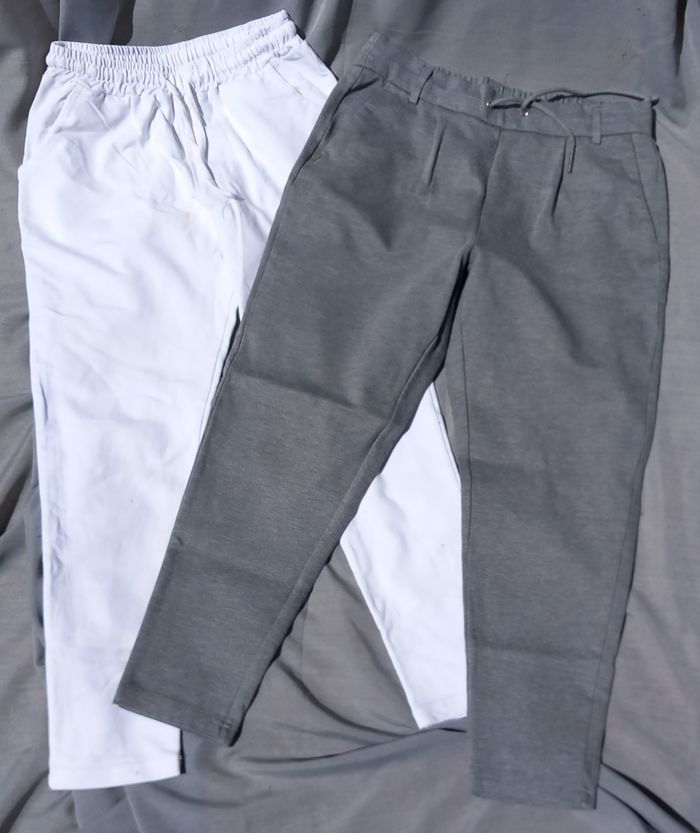 - Pantalon Cloothes, élastique à la taille et cordon de serrage, composition 95% coton 5% élasthanne, 2 poches, 1 tache sur l'intérieur de la jambe (voir photo), Largeur taille = 35 cm, largeur bas pantalon = 12 cm, Longueur taille-Bas 83 cm et entrejambe-bas 58 cm, Longueur Taille - entrejambe 26,5 cm - Pantalon Only Pop Trash coloris gris, taille élastique, 2 poches et cordon de serrage (manque 1 embout sur le lacet) ceinture avec passant, étiquette de composition coupée, article acheté sur Vinted mais la taille ne me va pas. possibilité d offre en lots. Envoi rapide et soigné