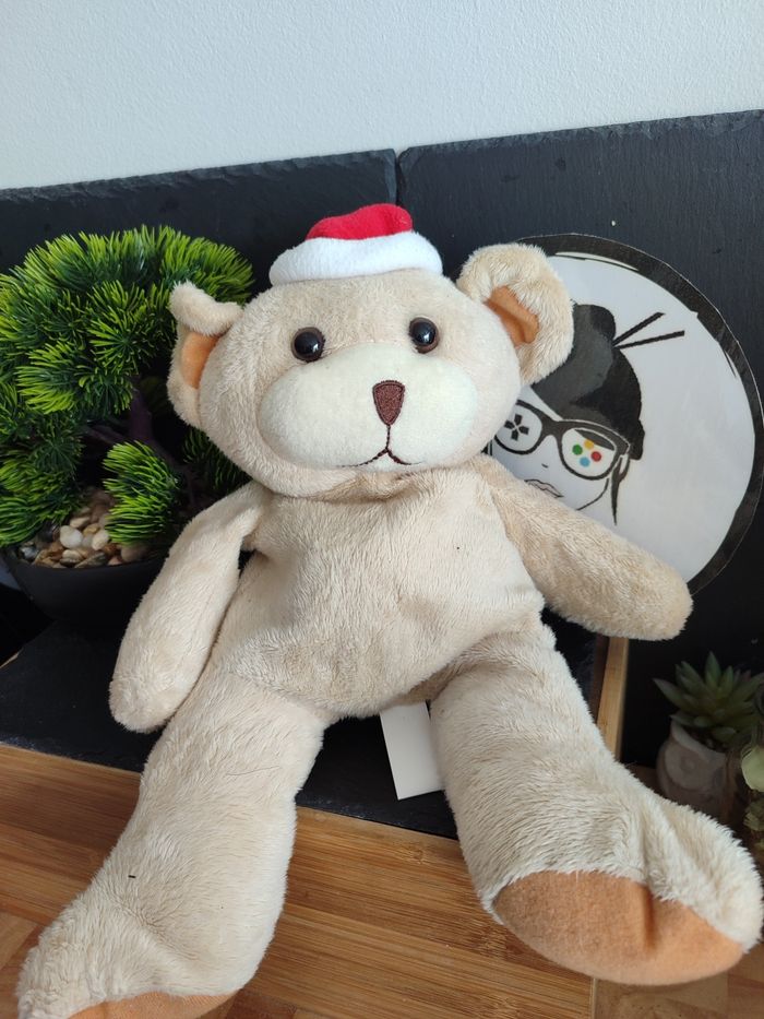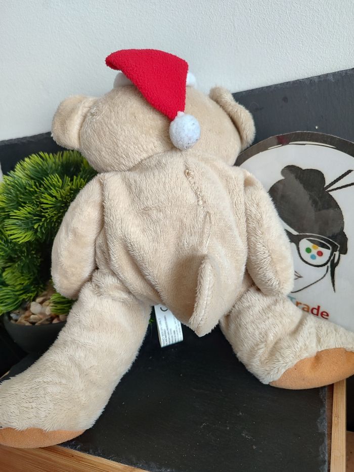 peluche ours beige bonnet Noël rouge blanc marron ancien Rmd Europe B.V PE0205 - photo numéro 1
