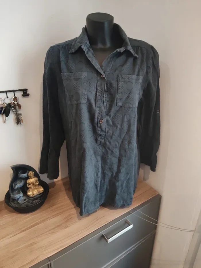95% coton Gris foncé Blouse manches longues Tissus epais Taille 42 Réf c2