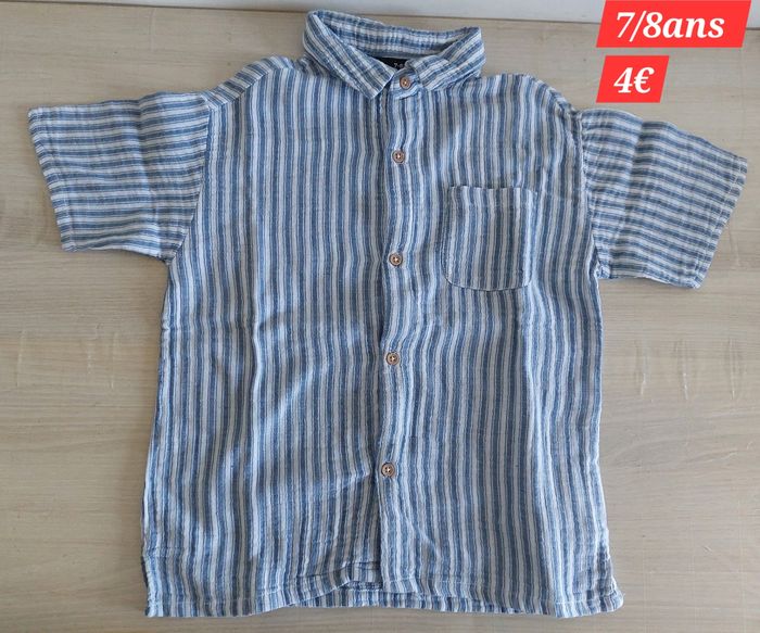 Vends Chemise manches courtes garçon 7/8ans Elle est en très bon état car très peu mise Maison non fumeur Le prix d'achat est indiqué sur la photo 1
