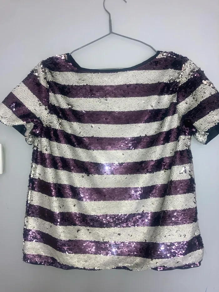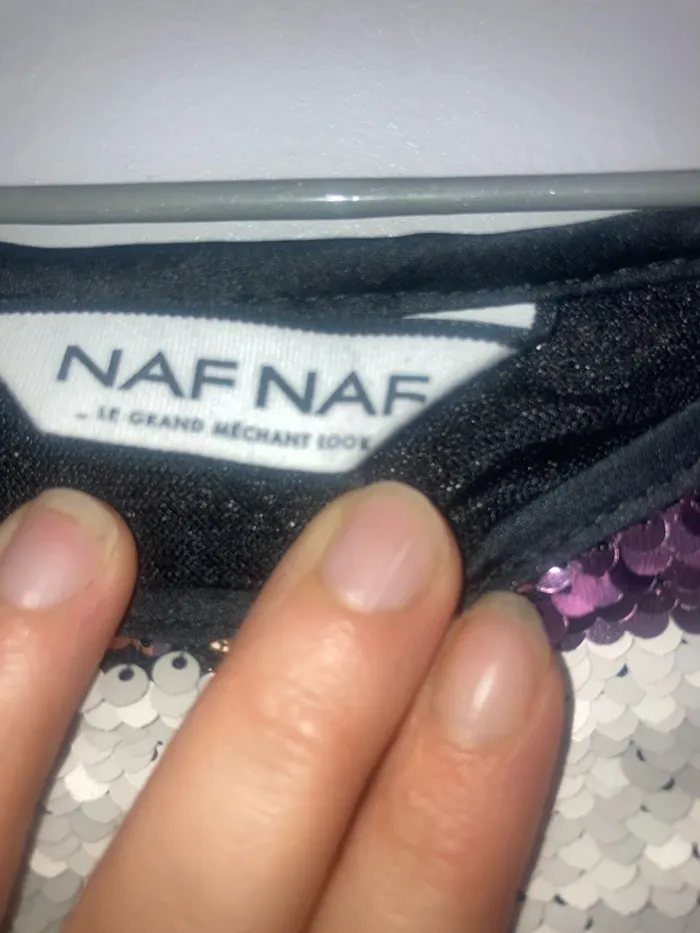 T-shirt à strass brillant voir dernière photo de la marque naf naf état correct. Couleur violet et « blanc » Taille M #marionfannymaissa_femme38m Sac femme MA1