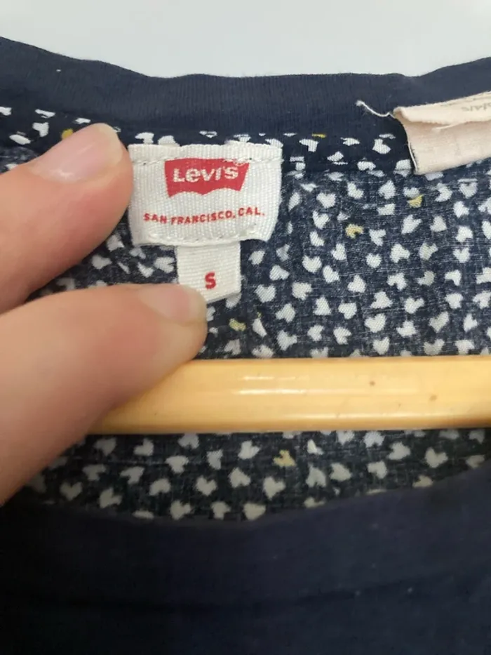 T-shirt Levi’s bleu marine taille S – petits cœurs blancs et jaunes dans le dos – très bon état - photo numéro 1