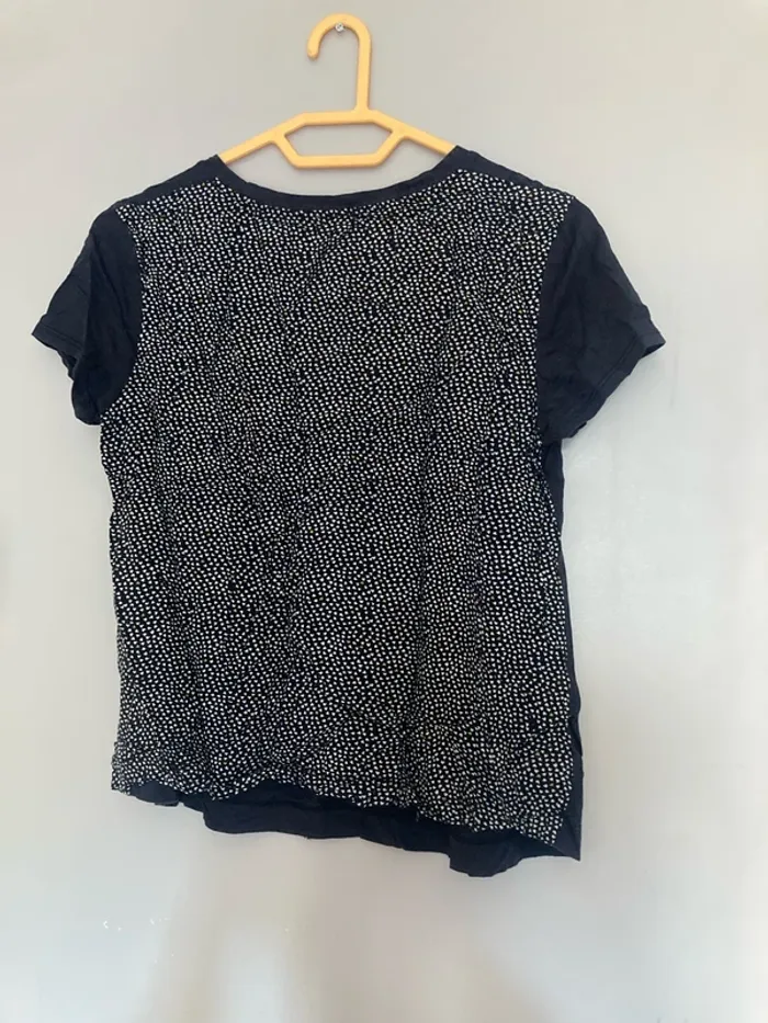T-shirt Levi’s bleu marine uni à l’avant, avec un motif discret de petits cœurs blancs et jaunes sur tout le dos (environ 2/3 blancs et 1/3 jaunes). Matière légère et agréable à porter. Taille S. Très bon état, presque jamais porté car ma fille a vite grandi. Idéal pour un look casual et féminin. Marque Levi’s Taille S Couleur bleu marine uni devant à motif blanc et jaune dans le dos. #marionfannymaissa_femme36s