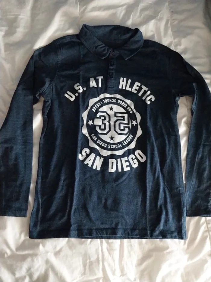 Polo bleu jean's T 11 / 12 ans Avec dessin devant Jamais porte Vendu 4€ #T10ans_missteph37