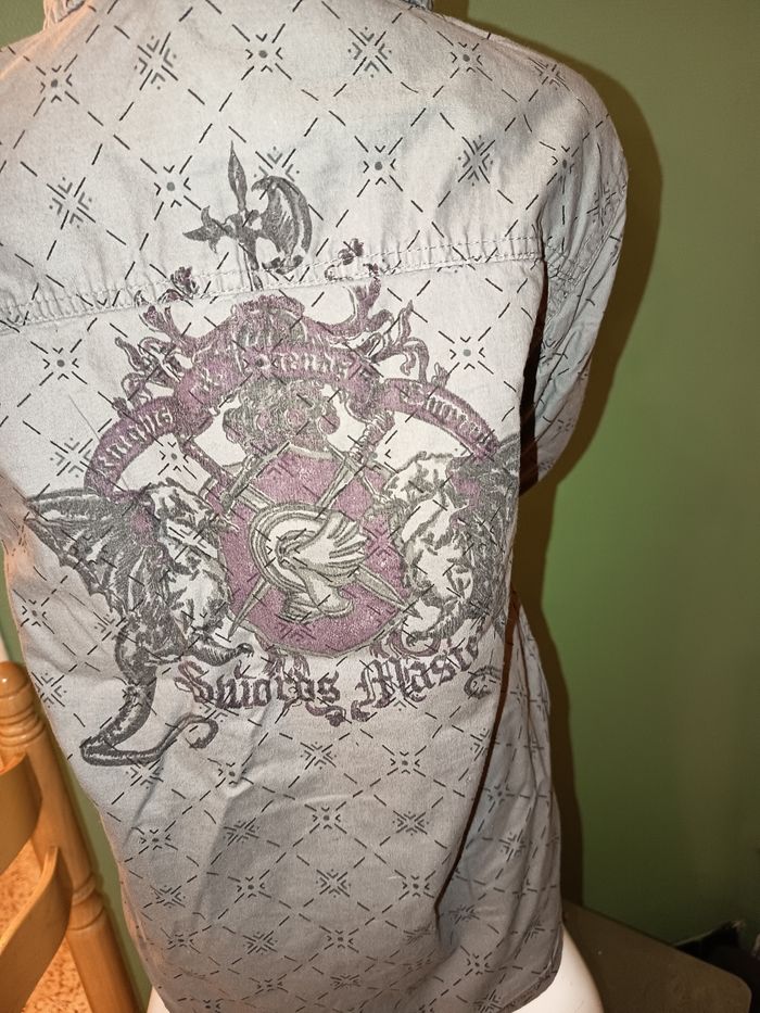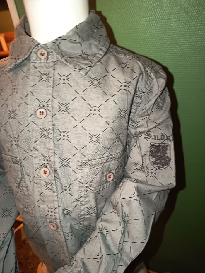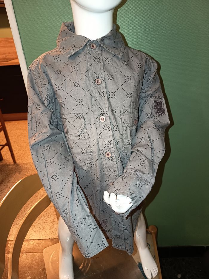 Chemise gris Manches longues Ferme avec des boutons Dessin dans le dos Taille 8 ans #chemise #gris #chemisemancheslongues #8ans #garçon #sandsoil #marylene025garçon8ans