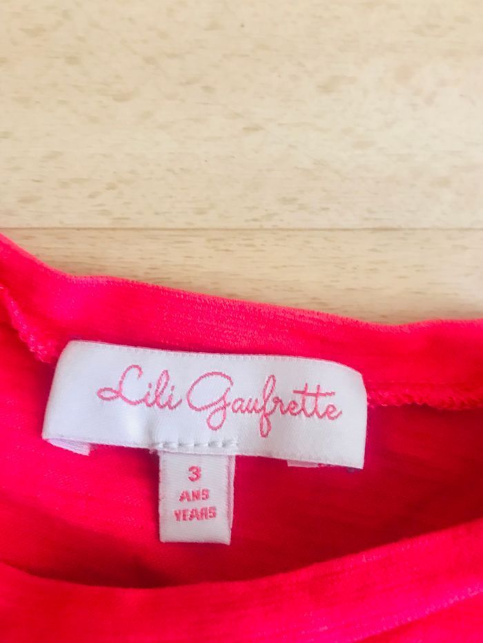 Robe fille taille 3 ans Lili Gaufrette Couleur rose Finition noir et blanc Manches courtes 100 % coton Très bon état (Lae)