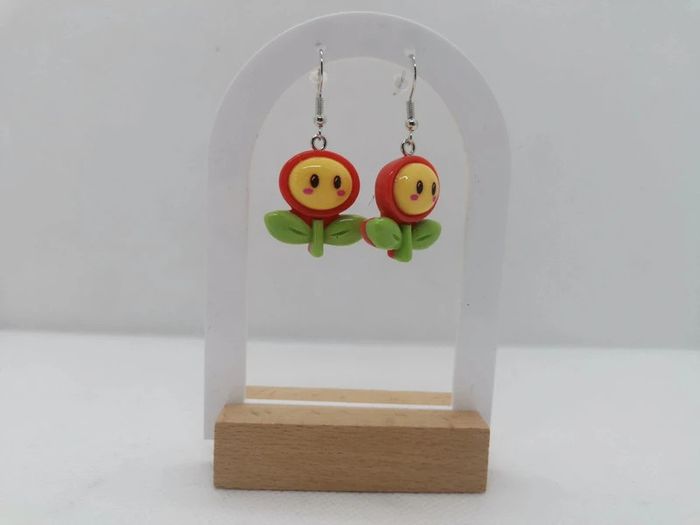 Jolie paire de boucles d'oreilles motif fleurs inspirées de Mario Bras. En résine fini brillant. Légères. Idéales pour soi-même ou pour offrir (prévu dans un emballage si demande) #dadouaccessoires #dadoubijoux -- #danou00_04
