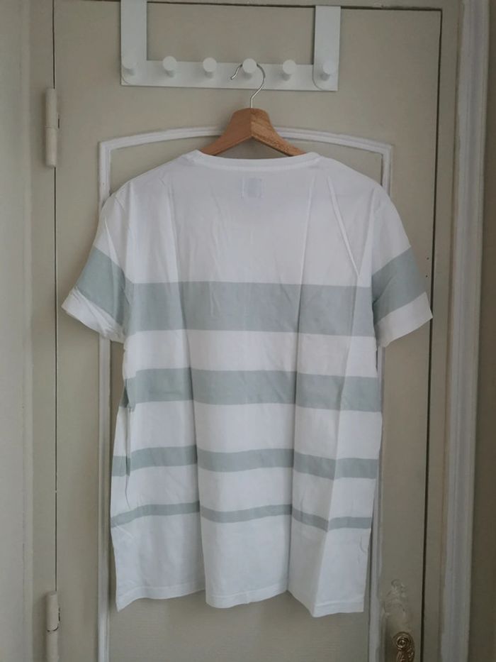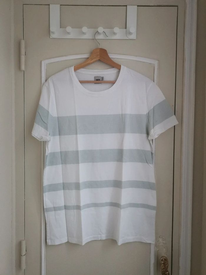 T shirt à rayures gris et blanc taille L