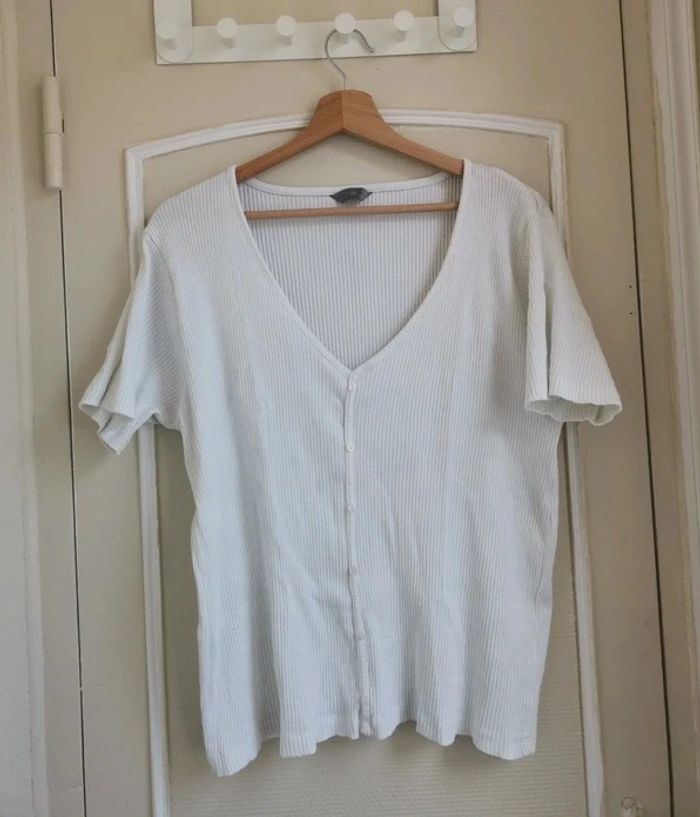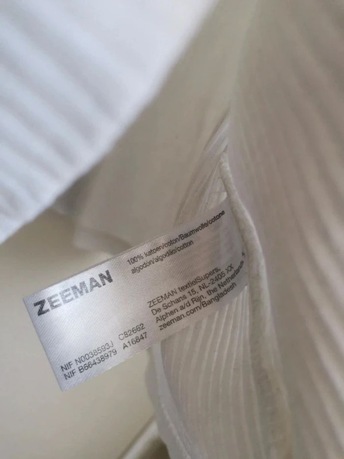 Marque Zeeman. Comme neuf. Taille 48. Relativement extensible. Je n'aime finalement pas le rendu sur moi, ayant le haut du corps long. 100% coton. Fiez vous aux mesures : C'est un blanc cassé. Épaules 46cm, longueur 61cm, aisselles 51cm (variable) Economisez les frais acheteurs en suivant #dadou_48 -- #danou00_06 #danou00_BACB2