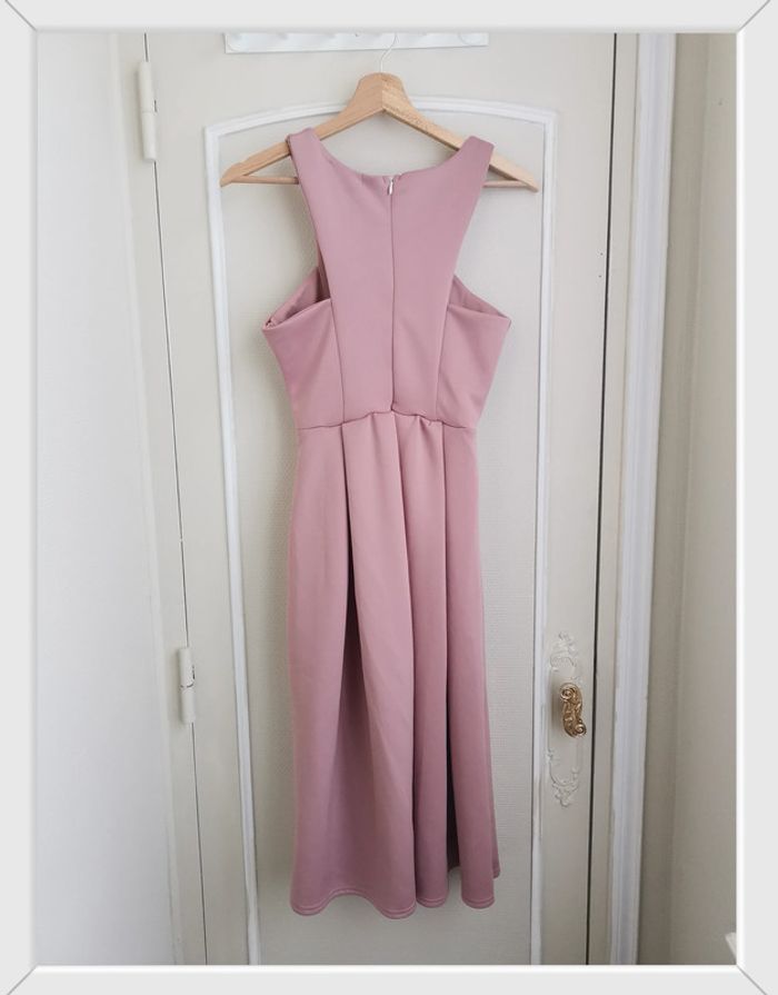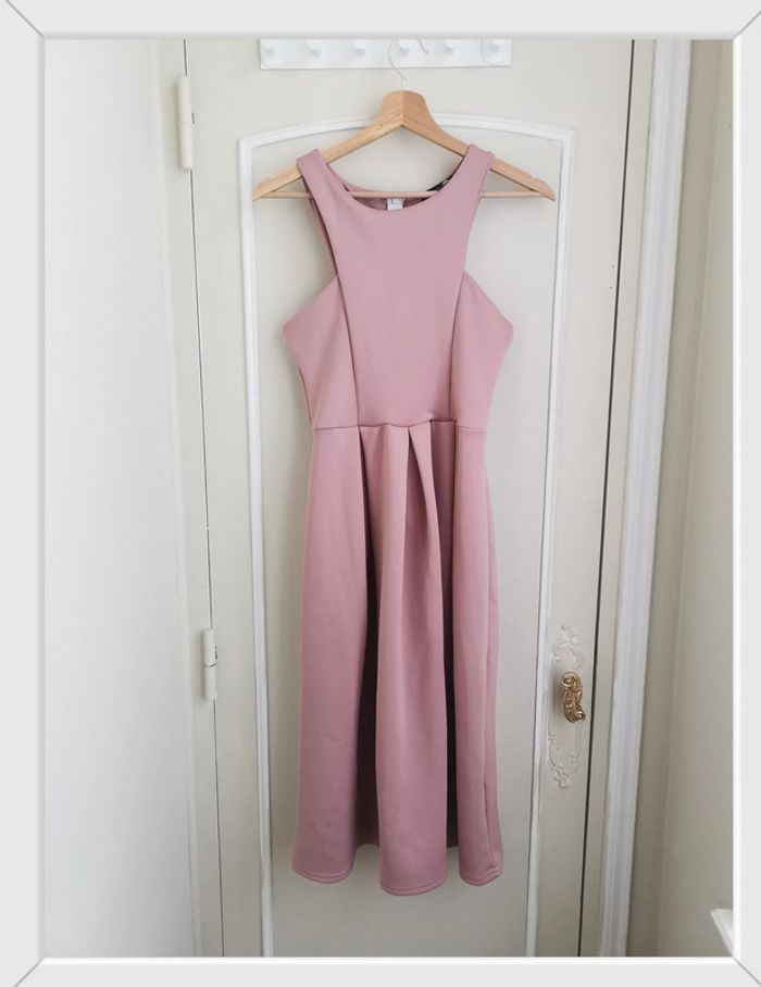Portée 1 fois pour un baptême. Robe de cocktail, soirée, événement, très élégante et chic. Agréable à porter. Distance entre les bretelles 27cm, aisselles 36cm, taille 32cm, longueur 103cm. 95% polyester 5% élasthanne. Marque Boohoo.