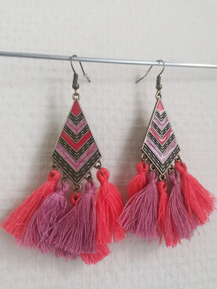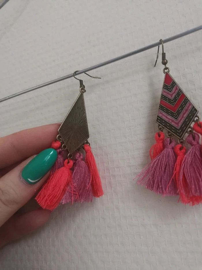 Paire de boucles d'oreilles en fer travaillé et coton pour les pompons. Esprit aztèque, décontracté. Taille : 8,5cm de hauteur (passant inclus) 2,3cm de largeur, 5mm d'épaisseur. Fermoir en silicone transparent. Le fer travaillé donne une couleur usée qui est très appréciable et originale. #dadoubeauty #dadouaccessoires #dadoubijoux -- #danou00_06