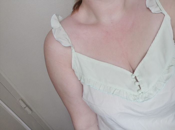 Porté pour essayer et pour la photo. Lavé 1 fois. Donc comme neuf. Taille 50, marque Blancheporte. 100% polyester. Le tissu est légèrement transparent. Se fier aux mesures à plat : Longueur à partir des bretelles 70cm, longueur du haut du décolleté jusqu'au bas 44cm, Largeur aisselle a aisselle 59cm. Prix d'achat 38,99€. • Pensez à faire des lots pour économiser sur les frais acheteurs en suivant #danou_50 -- #danou00_06 #danou00_SACB2
