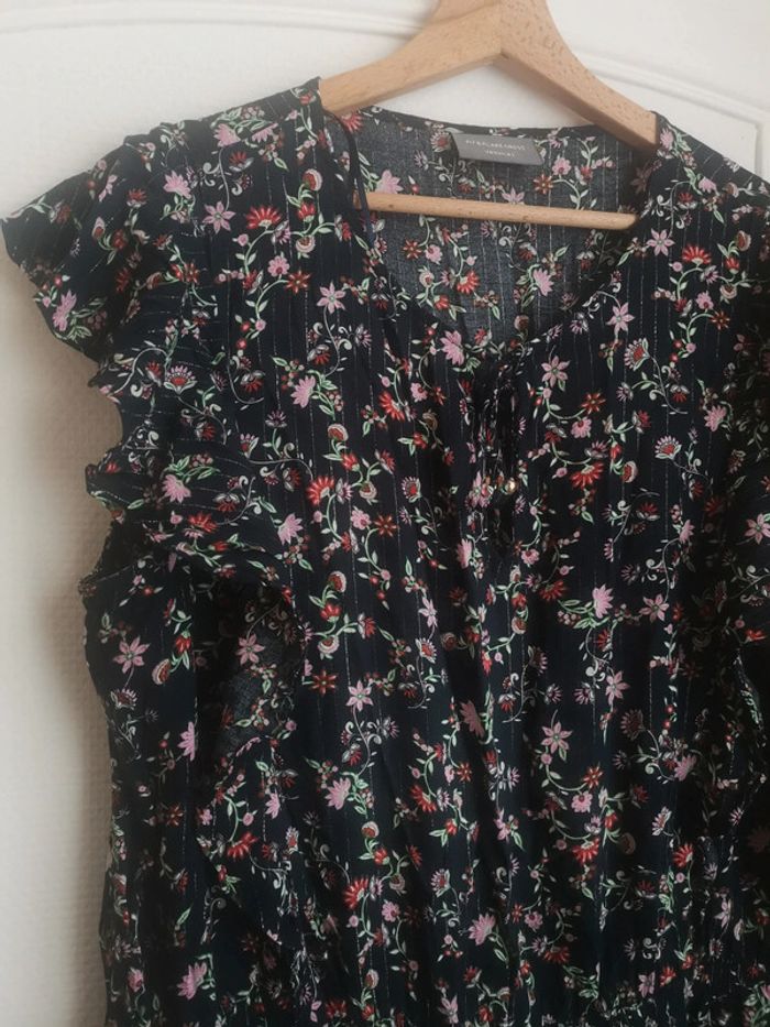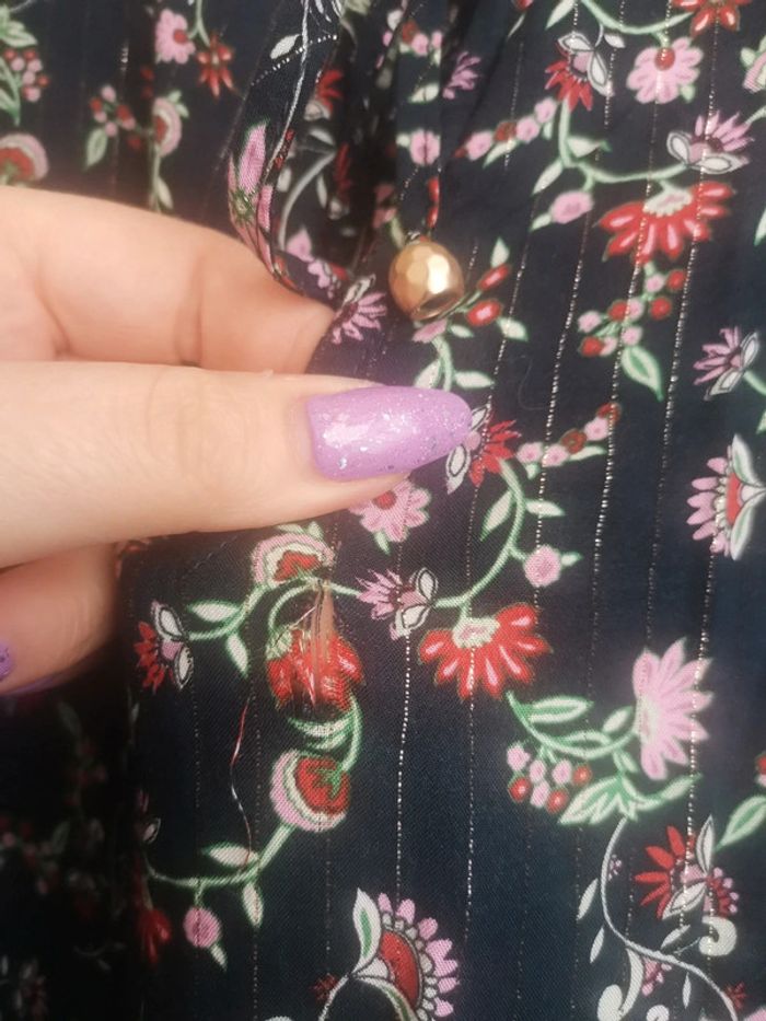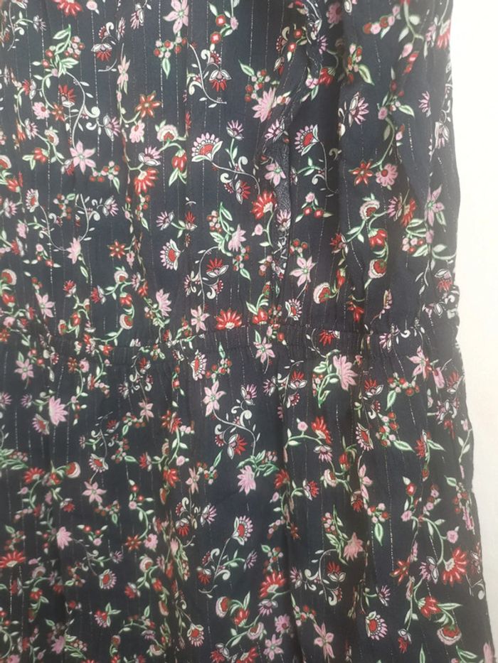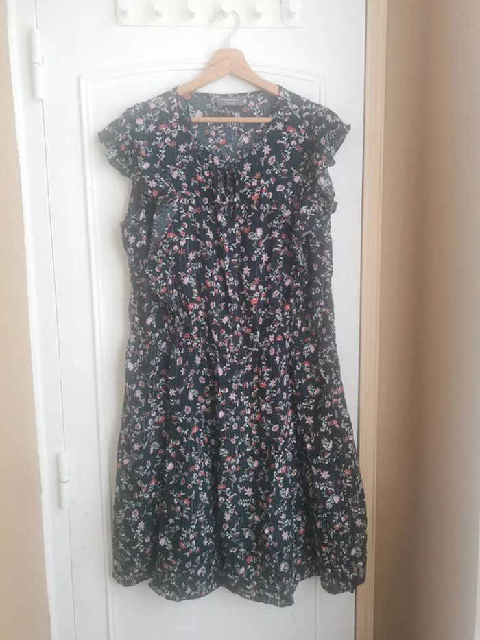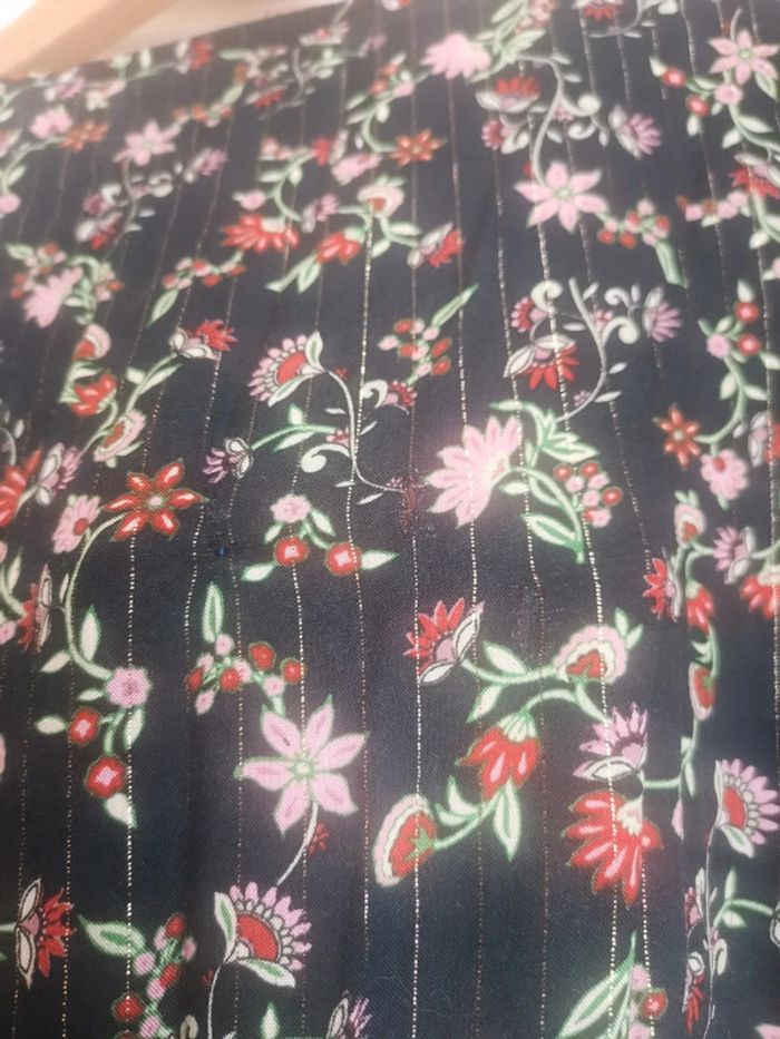 Robe fleurie et paillettes légère taille 48. Marque Yessica par C&A. 98% viscose, 2% de fil métallique argenté.