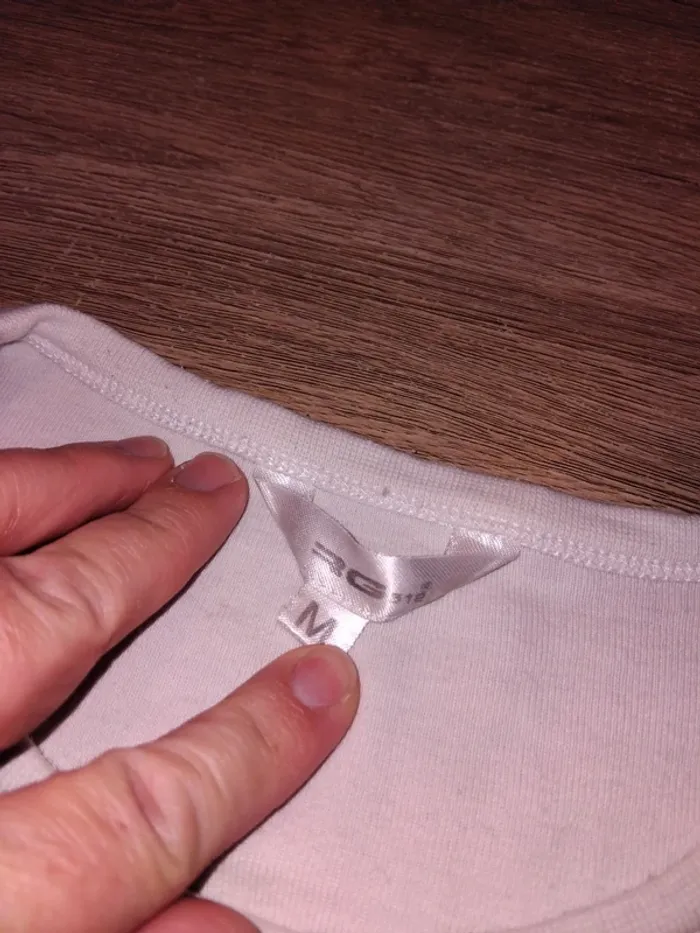 Bonjour, je vends ce tee shirt blanc et gris de la marque RG 512 en très bon état taille M (petites traces en haut du dos voir photo mais discrètes). Lavé maison non fumeur.