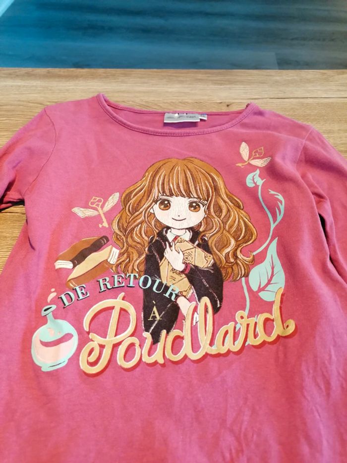 Bonjour, je vends ce tee shirt à manches longues rose motif Hermione de la marque Harry Potter taille 6ans en très bon état. Lavé maison non fumeur.