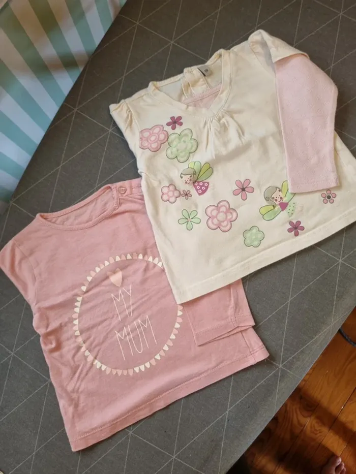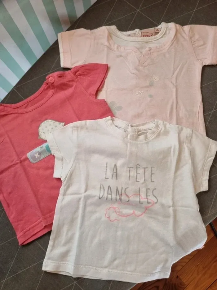 Très bon état, 3 t-shirt manches courtes, 1 gilet boléro et 2 t-shirt manches longues Très bon état Taille 12mois