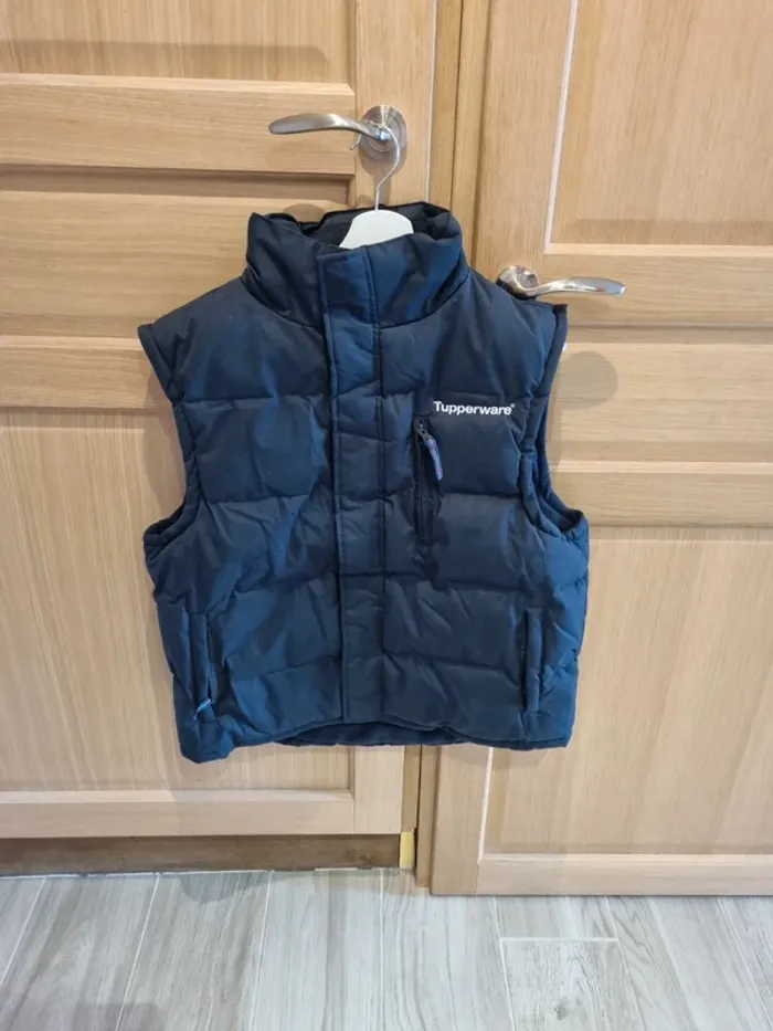 Vend veste sans manche à l'effigie de tupperware. État neuf jamais portée. Doublure en polaire intérieur