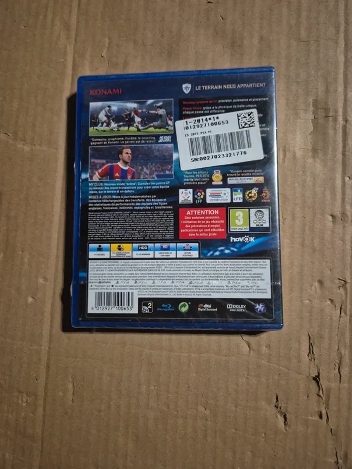 Jeu Pro Evolution Soccer 2015 pour PS4 neuf sous blister plastique d'origine. Version française. Le blister plastique est légèrement déchiré sur le devant en bas (voir photo 3). #jvtm59_PS4