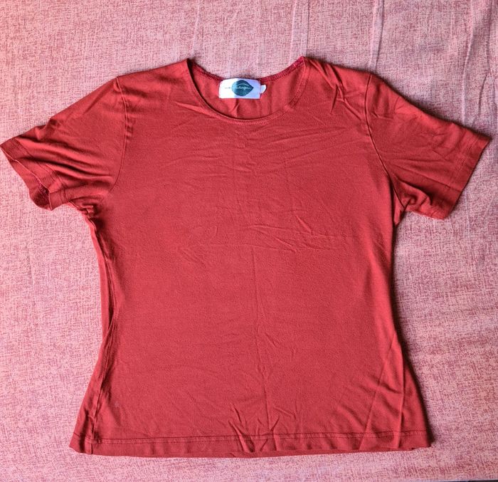 T-shirt de couleur rouille, matière agréable, à été porté quelques fois reste en état très correct. #femmetshirtm
