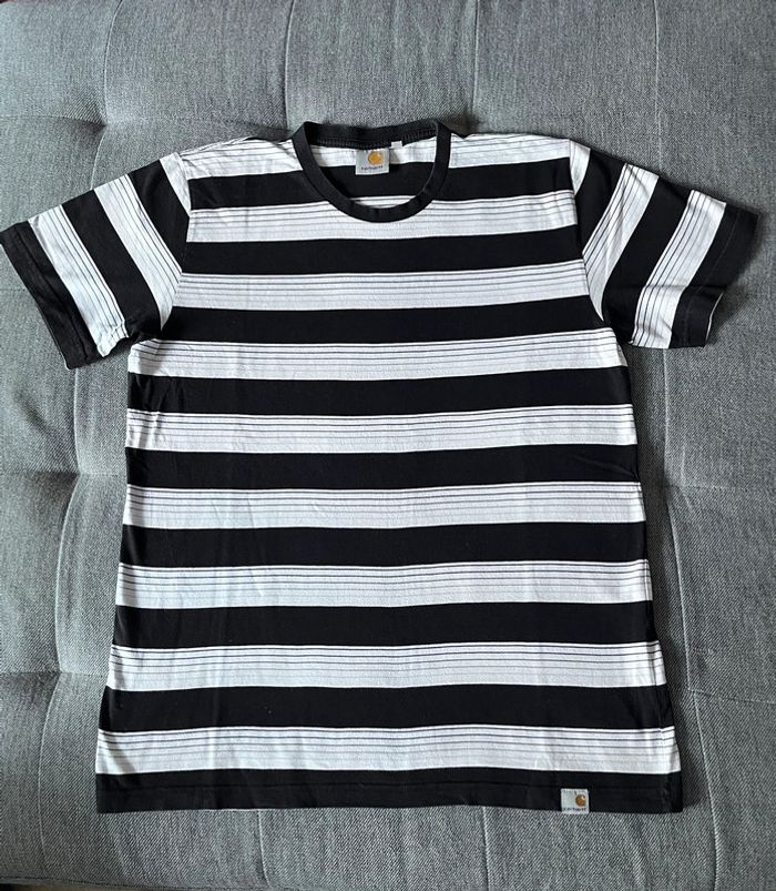 T-shirt à rayures marines et blancs , en très bon état général. #hommetshirtm