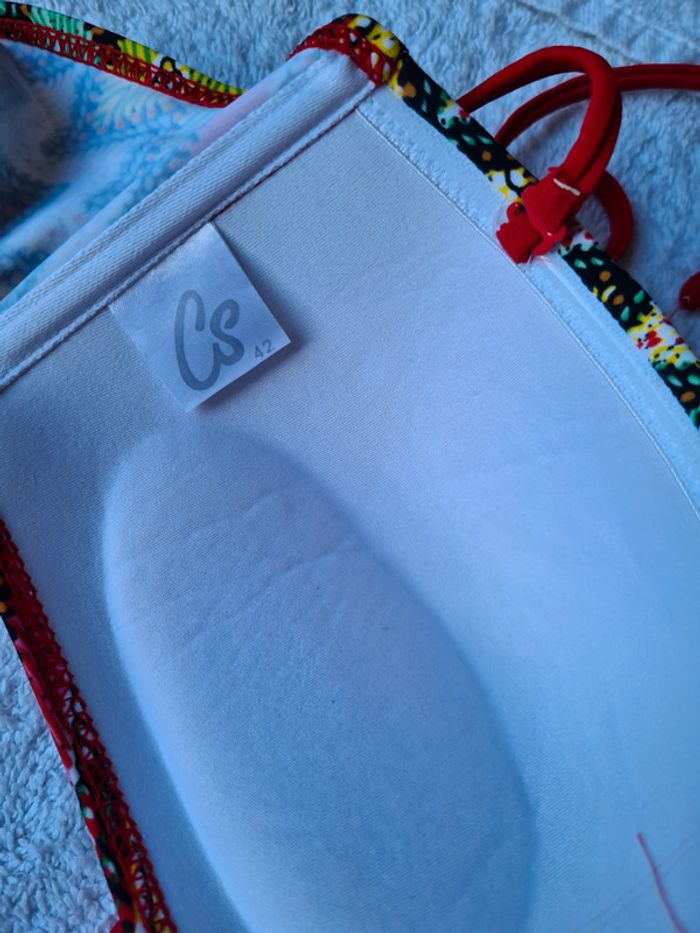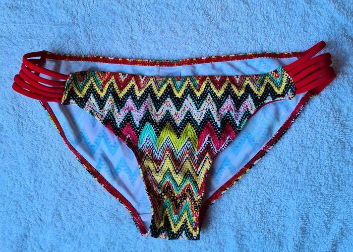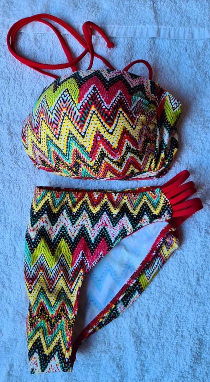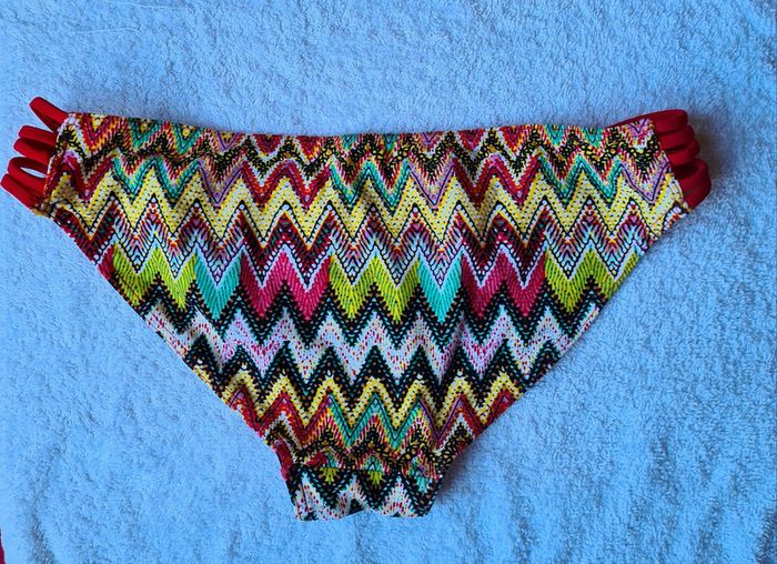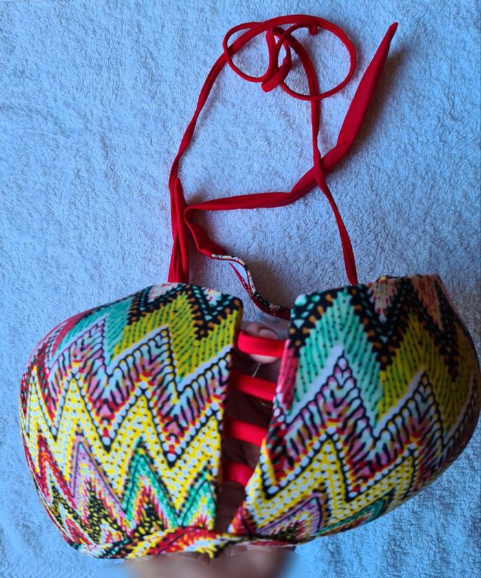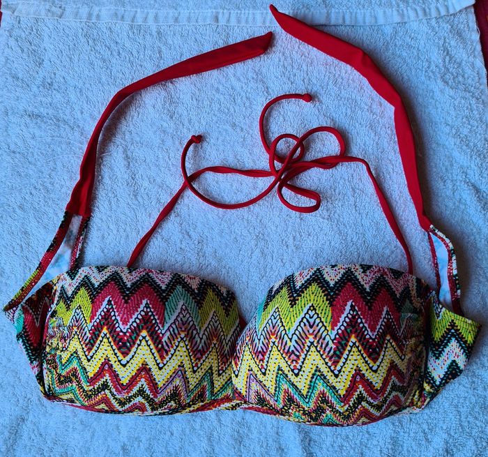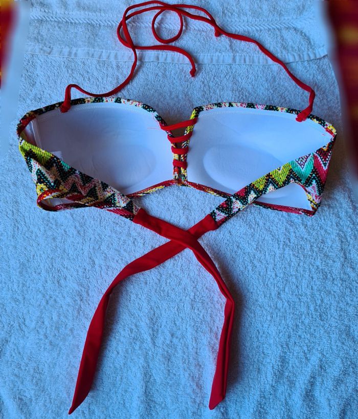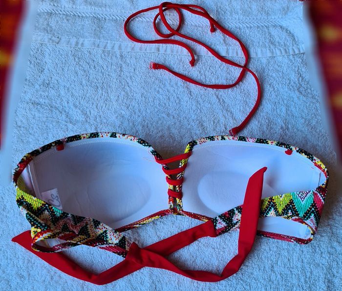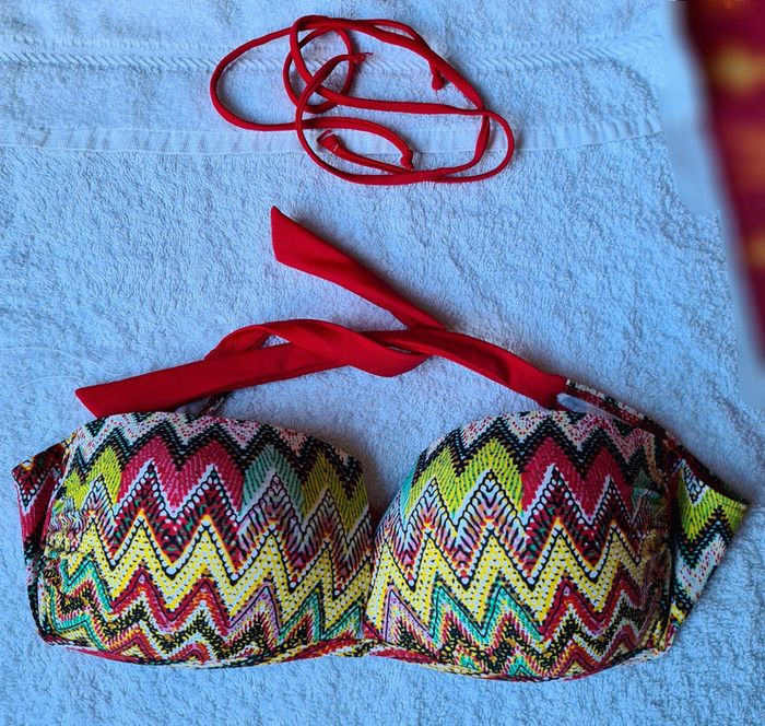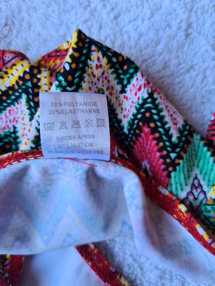Ensemble maillot de bain 2 pièces, jolies couleurs, cordon amovible du haut du maillot pour un porté en bandeau, pratiquement neuf car porté 1 fois, bas taille 40 et haut taille 42. #femmemaillotdebain2pieces
